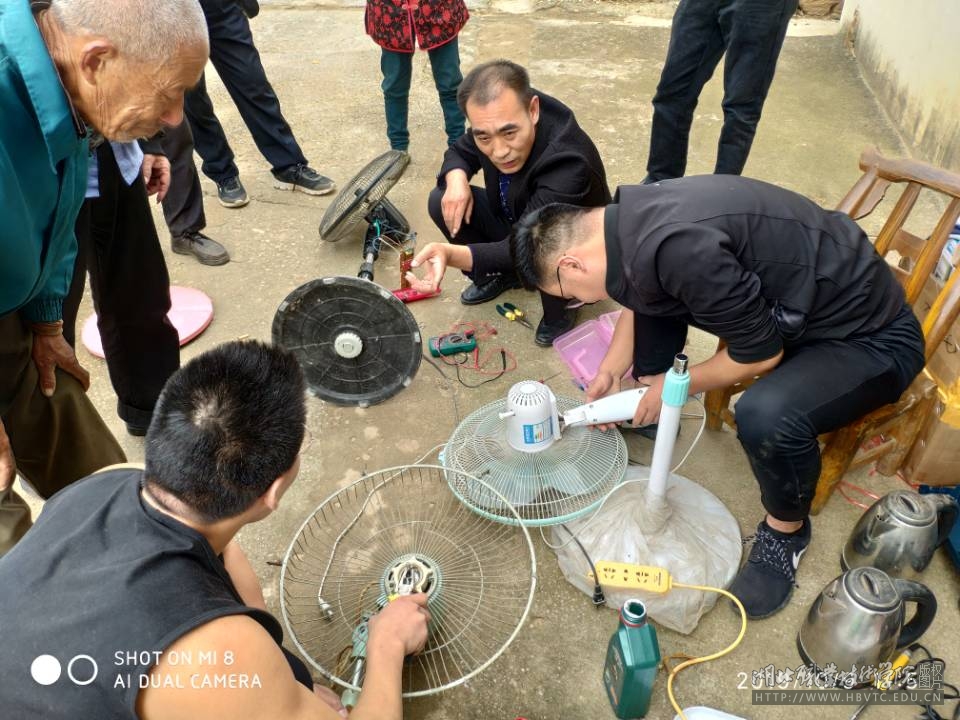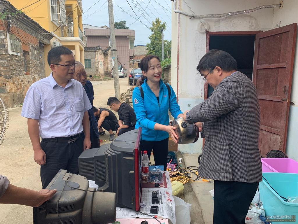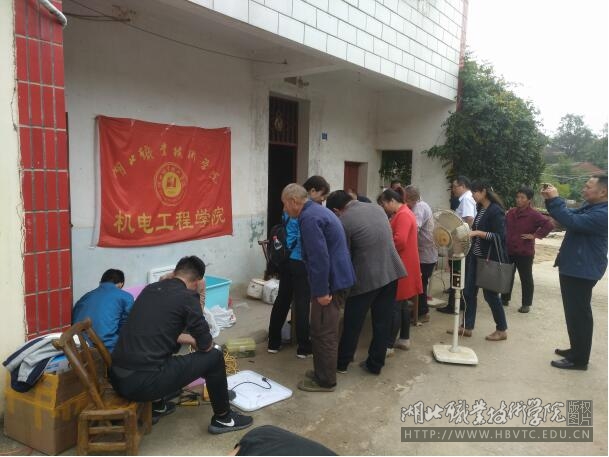 10月9日,在学校党委委员、副校长梅重、扶贫办公室常务副主任丁浙英带领下,机电工程学院党总支组织部分党员及入党积极分子赴大悟县北站村(邓塆片)开展了家电维修服务活动。机电工程学院家电维修服务队为村民义务维修了电视机、电扇、电饭煲、电热壶,期间向部分困难群众赠送了鸿运扇、电饭煲、电热壶。此次活动受到了村民热烈的欢迎,得到了村两委干部和群众的好评。此次活动助力北站村脱贫攻坚工作,进一步提升了群众认可度。