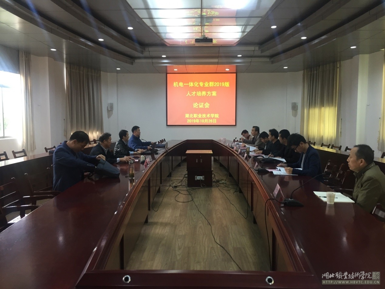 10月26日上午,在湖北职业技术学院文德楼二楼会议室成功举行了机电一体化技术专业群2019版人才培养方案论证会。会议首先由机电工程学院院长袁晓洲介绍了论证会的基本情况和专家组成员,专家组共7人,组长为学校信息化中心主任程胜文教授,成员包括湖北工程学院戴晓光教授,孝感市工业学校高级讲师纪文超,武汉金石兴机器人自动化工程有限公司高级工程师王涛,学校教务处副处长王俊平副教授,机电工程学院彭登峰副教授和毕业生代表胡友前。然后由谢超明老师汇报了专业群人才培养方案。经过听取汇报、查阅资料、现场质询,专家组一致认为该方案设计理念先进,人才培养模式、课程设置与教学安排科学合理,特色鲜明,针对性强,同意本方案在教学中实施。