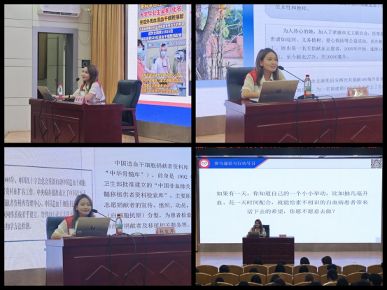 随后,红十字会张俊华主任从造血干细胞基本知识、国家政策支持、移植安全保障三方面分享了骨髓移植知识。视频和图片相结合,让同学们更直观的了解到骨髓在临床的重要性,是医疗救治的重要资源,是不可或缺的临床“救命线”。随后,张主任从捐献前专业技术人员科学评估,捐献中严格遵守规范操作,捐献后遵循质量标准,三方面将工作人员以专业打造核心竞争力,高要求严把骨髓捐献质量关的专业素养充分展示。