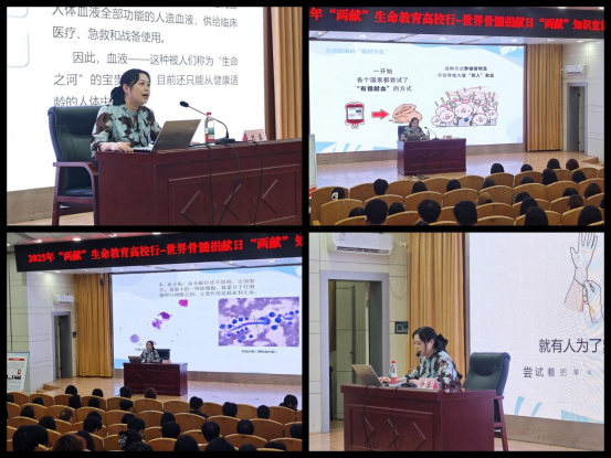 讲座从沈磊主任的无偿献血课堂开始。沈磊主任从献血的来源讲起,细致地介绍了献血的历史、流程,还生动形象地用案例为非医学专业的同学们讲解捐献流程、对身体的影响以及后续身体恢复情况,让大家对无偿献血不再陌生,不再畏惧。沈主任的讲解深入人心,也让大家深刻认识到,无偿献血并非遥不可及,它可以是我们每个人都能参与的、传递温暖的善举。最后,沈主任以一段说明视频,让大家对献血有了更加立体、深入的了解,呼吁大家积极考虑参与无偿献血。