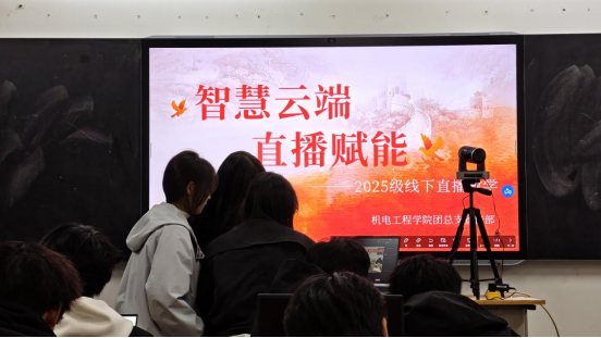为主动对接新媒体时代发展需求,切实提升学生的数字化素养与实践操作能力,2025年10月22日,机电工程学院团总支宣传部在职来乐业辅导员工作室指导下,开展了以“智慧云端,直播赋能”为主题直播设备使用教学课程。