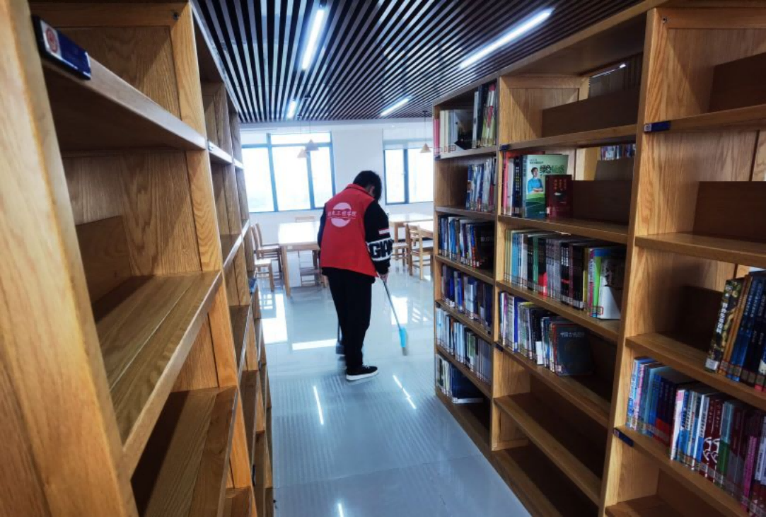 活动中,志愿者们分工明确,协作高效。在书架区,他们耐心地将错位的书籍归位,按索书号细心整理,确保每一本图书都能被读者快速找到;在阅读区,他们对桌椅进行逐一擦拭,不放过任何一个卫生死角;对于公共区域的地面,同学们也进行了彻底的清扫和拖洗。整个劳动过程井然有序,志愿者们忙碌的身影成为了图书馆里一道温暖而亮丽的风景线。从指尖的细致擦拭到书架的整齐排列,每一位志愿者都在用实际行动诠释着责任与担当。