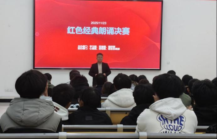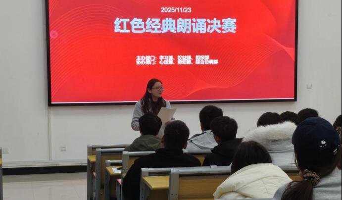 为了引导青年学子从革命文献、红色诗词中汲取精神养分,传承红色基因、厚植家国情怀,2025年11月24日,机电工程学院学生会在学院指导下成功举办“红色经典朗诵决赛”。