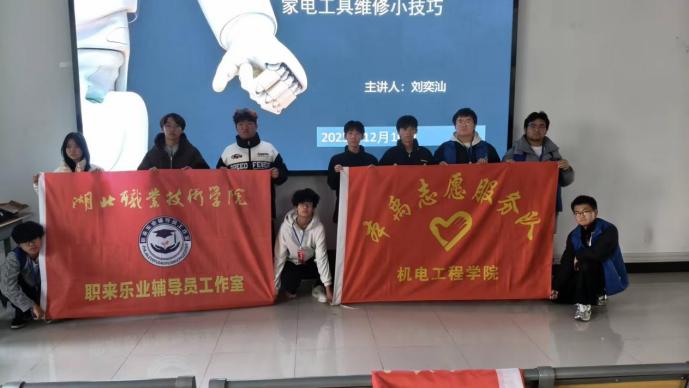 12月10日,湖北职业技术学院智能制造协会携手本禹志愿服务队在南区知行楼举办了“家电维修进校园,实践赋能助生活”专题活动。本次活动由“职来乐业”辅导员工作室老师专业指导,聚焦学生实操演示与问题答疑,为同学们搭建起家电维修知识学习与实践交流的优质平台。本禹志愿服务队志愿者全程参与现场组织、技术协助等工作,保障活动顺利开展。