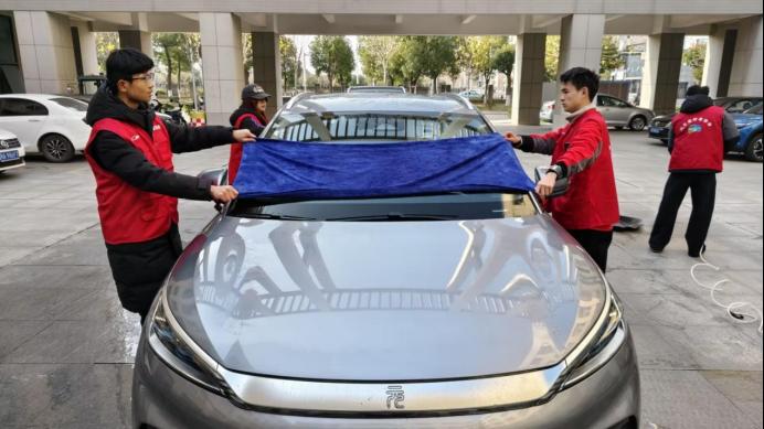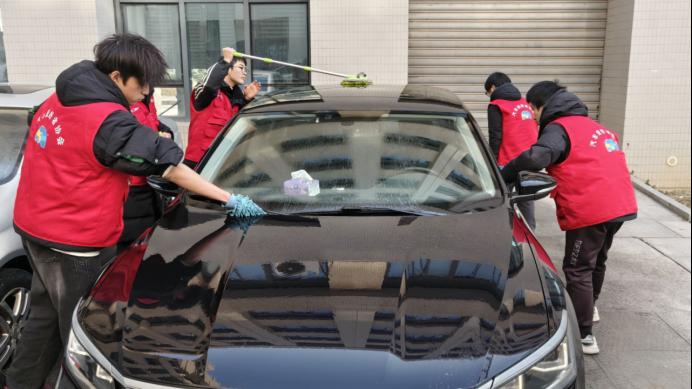 在活动现场,学长为我们讲解洗车流程、工具选用、清洁要点及环保洗车剂使用,分享车窗除雾、内饰除尘等日常养护小窍门。参与者分组实操,在专业指导下掌握科学洗车技能,避免不当操作损伤车辆,践行爱护车辆、绿色出行理念。